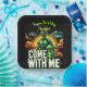Two vividly coloured alien figures stand together, depicted in a dynamic pose. One is tall and muscular, while the other is smaller, exuding a friendly vibe.