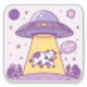 This design features a cute and funny cartoon of a cow being abducted by a purple UFO with a yellow beam. The cow has a surprised expression on its face, as if it doesn’t know what’s going on.
