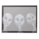 A colour pencil drawing of three Alien Grey ETs against a starry black sky.