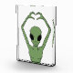 Vivid green alien forming a heart with arched arms against black, blending sci-fi whimsy with playful charm. Bold contrast, perfect for space fans and quirky casual outfits.