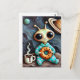 Alien in Blue PJs with a Coffee and Bagel Postcard