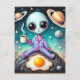 Alien in PJs with a Coffee and Egg Postcard
