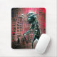 Giant green metallic alien creature invading a metropolitan city. Wombo Dream AI and artist collaboration.