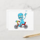 alien on tiny bicycle postcard