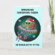 Spread intergalactic holiday cheer with this one-of-a-kind Christmas card. Featuring an adorable alien cruising through space in a UFO, loaded with presents, and pulled by two robot-like reindeer. Perfect for anyone who loves a fun, futuristic twist on the holiday season. Send your warm wishes with a card that's out of this world.