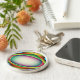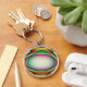 This keychain features a multicoloured pattern of bright psychedelic colours surrounding a central egg shaped structure. It resembles a fantasy of an alien spaceship ready to abduct an earthling.