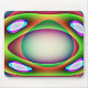 This mousepad features a multicoloured pattern of bright psychedelic colours surrounding a central egg shaped structure. It resembles a fantasy of an alien spaceship ready to abduct an earthling.