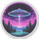 Step into a world of otherworldly wonder with our mesmerising Alien Spaceship Vaporwave Aesthetic Art Print. Against the backdrop of a starlit sky, this captivating scene depicts an alien spaceship hovering over a serene night field, casting an ethereal glow that bathes the surroundings in a surreal light.
