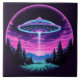 Step into a world of otherworldly wonder with our mesmerising Alien Spaceship Vaporwave Aesthetic Art Print. Against the backdrop of a starlit sky, this captivating scene depicts an alien spaceship hovering over a serene night field, casting an ethereal glow that bathes the surroundings in a surreal light.