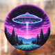 Step into a world of otherworldly wonder with our mesmerising Alien Spaceship Vaporwave Aesthetic Art Print. Against the backdrop of a starlit sky, this captivating scene depicts an alien spaceship hovering over a serene night field, casting an ethereal glow that bathes the surroundings in a surreal light.