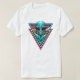 A simple design of an alien with triangular elements, featuring a colour palette dominated by turquoise (tosca) and pink. The alien has a playful, futuristic look, with geometric triangle shapes incorporated into the design, creating a vibrant and modern feel.