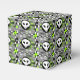 ATTENTION EARTHLINGS! Cool retro TV testcard inspired design featuring a stylised alien face and extra-terrestrial interference in shades of black, white, grey and green. A customisable design for you to personalise with your own text, images and ideas. An original digital art image created by Jess Perry.