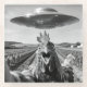Alien UFO Chicken Art Abduction SciFi Humor Glass Coaster