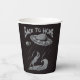 alien ufo surfing illustration with back to home paper cups