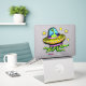 This super cute alien sticker has a happy smiling green alien looking out of a ufo as it floats through the stars, in outer space. Tentacles poke out of the flying saucer. This original art was hand drawn with ballpoint gel pen, then coloured digitally.