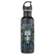 The horned alien war mask water bottle is a menacing sight to behold, with its skull-like appearance and sharp metal spikes protruding from its chin. Set against a grey grunge background, it's a fearsome symbol of power and strength, fit for only the most ruthless and skilled warriors.