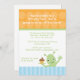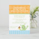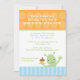 This 5x7 boys birthday party invitation has an orange polkadot top with a blue striped bottom. There is a cute alien waving with one hand and holding a cupcake with the other hand. You can easily customise your party information. Cocoa Studio