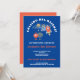 Space theme for your son’s 3rd birthday party with cute aliens from outer space and spaceship illustration with white and red typography on a dark blue background. Easily personalise the text to your own details.