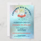 The magic of outer space for your son’s 4th birthday party with a cute illustration of an alien in a spaceship and moon and stars on a Watercolor backdrop in shades of teal, blue and green. Easily personalise the text to your own details.