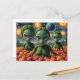 A group of aliens have landed in a weird field of apples that somehow has cactus growing in it as well