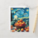 A group of aliens look at the fruits on a table in wonder a faux van gogh