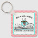 All a Girl Needs is Coffee and a Good Book Quote Key Ring