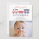 This cute "all aboard" girl's 1st/first birthday photo invitation features a white background with steam train in pink and purple. The reverse side features a pink background with cloud patterns. Personalise it for your needs. You can find matching products at my store.