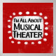 "I'm All About Musical Theatre" is a cute text design in red with black text, along with a white accent shape and white textured whimsical dots surrounding it.