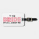 Fully customisable. Has 'I'm the bride it's all about me' written on it. Cute way for the bride to let the world know the news. Perfect for bachelorette parties and other wedding events.