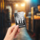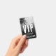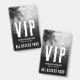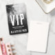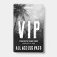 This VIP badge features a bold black and white design, perfect for an outdoor concert or a party with a Coachella vibe. At the top, grayscale artwork shows silhouettes of concert-goers and a palm tree in the top left, capturing the energy of a live festival scene. The image fades smoothly into black at the bottom, where the event name, date, and “All Access Pass” are displayed in clean white fonts, with “VIP” bold at the top.