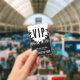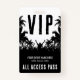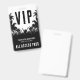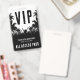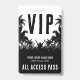 This black and white VIP badge features a bold silhouette design perfect for an outdoor concert or a party with a Coachella vibe. The front shows a crowd of concert-goers with their arms raised, surrounded by palm trees, creating a striking festival atmosphere. "VIP" is displayed at the top in a bold font, with the event name, date, and "All Access Pass" placed neatly at the bottom.