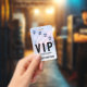 This vibrant VIP badge features a dreamy sunset scene with a ferris wheel in the background, capturing the colourful vibe of an outdoor concert or festival. The soft blend of pink, blue, and purple gives it a magical dusk feel, perfect for events with a Coachella-style theme. The design uses bold, simple black fonts, with "VIP" at the top and space below for your event name, date, and "All Access Pass."