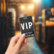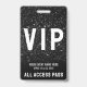This VIP badge features a bold faux black glitter background, perfect for a concert, birthday party, bachelorette, fashion show, and more. Along the top, silhouettes of palm trees stretch across the glittery backdrop, creating a fun and glamourous vibe. At the bottom, a solid black gradient helps the text stand out clearly, making sure your event name, date, and “All Access Pass” are easy to read in the clean, bold white sans serif font. “VIP” is placed at the top in the same simple style for a sleek, modern look.
