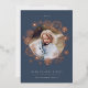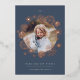 A simple and festive holiday card that frames your favourite photo with fluffy rose gold foil snowflakes in varying sizes. Personalise with the year across the top, and your custom holiday greeting and family name along the bottom. Shown with "Warm Holiday Wishes." An elegant, lighthearted choice in wintry colours and real foil accents for your Christmas 2022 greetings.