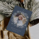A simple and festive holiday card that frames your favourite photo with fluffy snowflakes in varying sizes. Personalise with the year across the top, and your custom holiday greeting and family name along the bottom. Shown with "Warm Holiday Wishes." An elegant, lighthearted choice in wintry colours for your Christmas 2021 greetings.