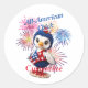 baby chicken wearing a red,white and blue american flag top and fireworks exploding in the background to personalise
