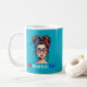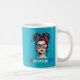 Show your American pride and patriotism with this ceramic, dishwasher safe, coffee mug featuring messy bun girl, wearing her red, white, and blue headscarf and matching sunglasses. Great for morning coffee, and as a gift for family and friends.