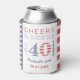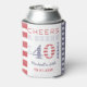 An All-American 40th birthday party can or bottle cooler design, incorporating the Stars and Stripes, shown here on a can cooler, perfect for an outdoors birthday party celebration.