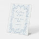 All Blue Toile Boy Baptism Elegant Custom Pedestal Sign