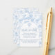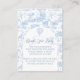 Featuring a charming blue toile design with cute safari animals like lions, giraffes, and elephants, this invitation brings together the perfect balance of playful elegance and sweet adventure.