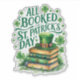 "All Booked For St. Patrick's Day" typography with stacked books, top hat and shamrocks. Perfect holiday gift for book lovers.