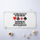 If you are an avid duplicate bridge player, you'll enjoy this desk mat featuring the four card suits and the following bridge saying and bridge enquiry that's applicable to any bridge hand that you play with your bridge partner: "All Hands Can Be Played In Either Direction - The Questions Are: Which Side Bids It & How Is The Hand Played?" Make others do a double-take and ponder about the key questions when playing duplicate bridge with this memorable bridge saying desk mat!