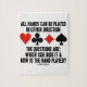 If you are an avid duplicate bridge player, you'll enjoy any of these gifts featuring the four card suits and the following bridge saying and bridge enquiry that's applicable to any bridge hand that you play with your bridge partner: "All Hands Can Be Played In Either Direction - The Questions Are: Which Side Bids It & How Is The Hand Played?" Make others do a double-take and ponder about the key questions when playing duplicate bridge with these memorable gifts!