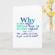 Passover card features The Four Questions. Unusual feature is the complete text of the 4 questions on an inside panel. Shades of blue. Simple, striking typographic design.