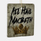 For theatrical fans of the Scottish play by Shakespeare, this design has the quote "all hail Macbeth" with a grungy image of a crown.