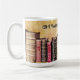 My original digital artwork is featured on this fun library style mug, consisting of old books in a row on a rustic old-style parchment look background. The statement "All I Need Are Books And Coffee" is on the front of the mug. These are 15-ounce mugs, just the perfect size for your home brewed coffee! It would make a great gift and you can put packets of coffee inside or a little plant to make it extra special for your loved one.