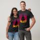 I give wanted to give this a 4 instead of a 5 because these Basic DARK T0shirts run unexpectedly SLIM or Narrow. Which is great if you do not have a potbelly, but I have a paunch. It isn't the shirt's fault that I've got a beer belly. The design and shirt itself is a quality cotton shirt. The color is more of a deep purple, but still a very pretty color. The Basic DARK T-shirts run a bit SLIMMER than the Basic Ts. The neck is a fraction narrower (or seems to be narrower) also. I'm a paunchy middle-aged woman and my neck is 12 inches (31cm) thick and the neckline fell about the same as in the photo of the man, and I had the desire to tug it a bit. So if you're a thick necked man or like loose shirts, be aware these are slimmer shirts. Once I get rid of my lockdown paunch it'll look great. The shirt washed well in cold water with no apparent bleeding. We don't have a dryer, so it hung dry. Did not shrink. Love the colors and the design. The design looks smaller on my shirt than it does on the model on-line. But still, it looks good on the shirt. The printing looks as it does on the model, just the size seems fractionally smaller. Washed garment in cold water, hung dry and design appeared unaffected.