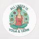 The phrase "Woman meditating with yarn, all I need is Yoga and Yarn" suggests that the woman finds both yoga and yarn crafting to be important aspects of her life. By combining the two activities, she is able to achieve a sense of relaxation, mindfulness, and creativity.