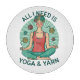 The phrase "Woman meditating with yarn, all I need is Yoga and Yarn" suggests that the woman finds both yoga and yarn crafting to be important aspects of her life. By combining the two activities, she is able to achieve a sense of relaxation, mindfulness, and creativity.