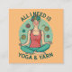 The phrase "Woman meditating with yarn, all I need is Yoga and Yarn" suggests that the woman finds both yoga and yarn crafting to be important aspects of her life. By combining the two activities, she is able to achieve a sense of relaxation, mindfulness, and creativity.